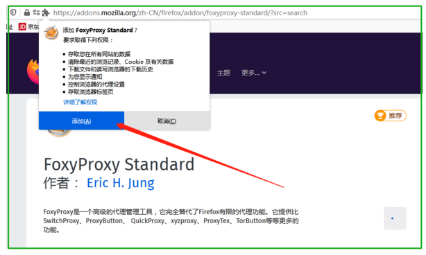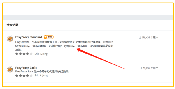 4、然后在搜索结果中点击FoxyProxy。5、接着点击“添加到firefox”。6、弹出提示框后点击添加。7、点击“好的,明白了”。8、随后开始添加线路,点击Add。9:然后按照下图的标注填写相关信息。