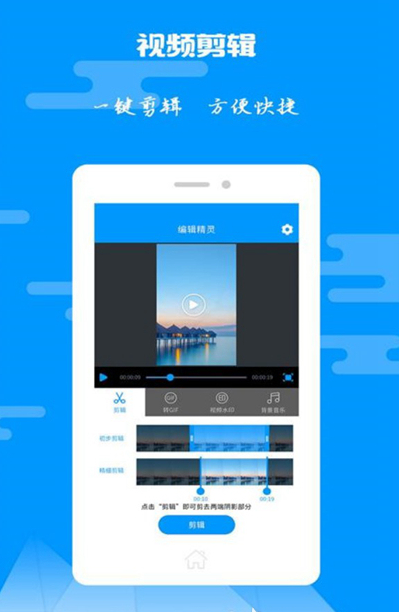这是一款拥有多种功能的视频剪辑软件,不仅有基础的视频剪辑功能,而且还可以将视频转化成为gif图片导出使用,对于新手来说,操作比较简单友好。