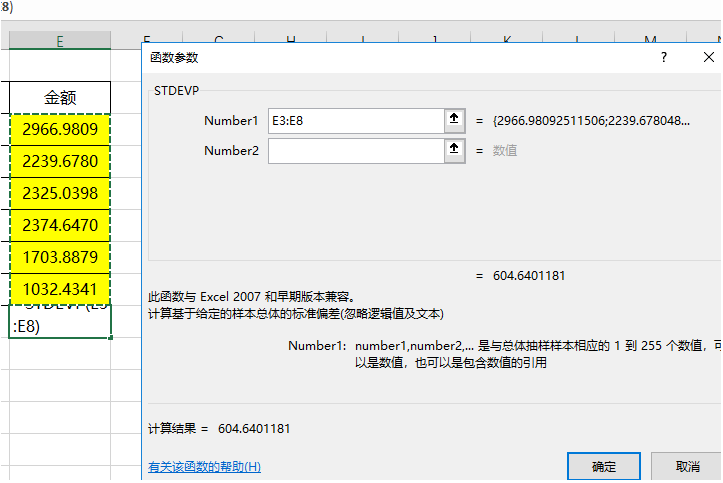 4、选择STDEVP函数,并点击确定。