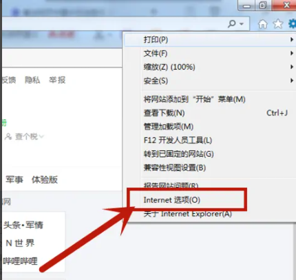 1、打开IE浏览器,然后选择右上角设置。