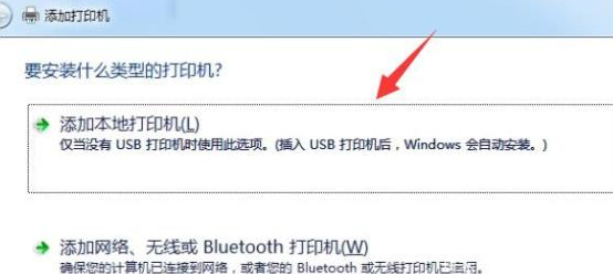 3、选择添加本地打印机即可。