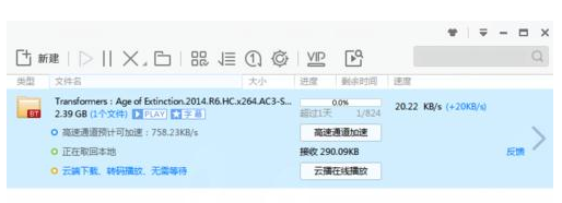 5、随后耐心等待下载进程、由于BT文件一般下载速度较慢,离线空间预先载入可以得到改善,或者也可以使用高速通道加速获得加速。
