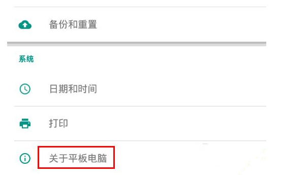 2、在设置页面张红,向下翻动,点击“关于平板电脑”。