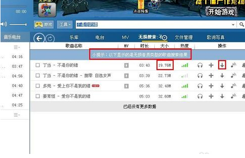 3、记得看小提示,说明是无损音乐,所以可以看到每一个结果都很大,十几甚至几十M,单击下载。