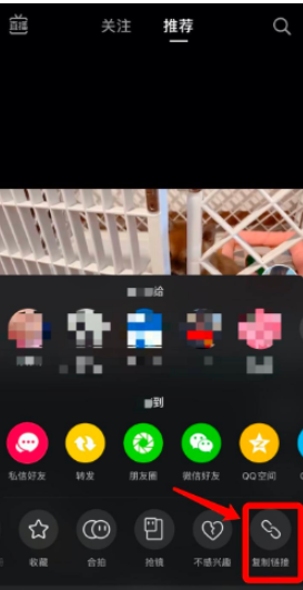 2.此时会弹出选项卡,点击其中的”复制链接“,在红色箭头那一栏往右滑即可。