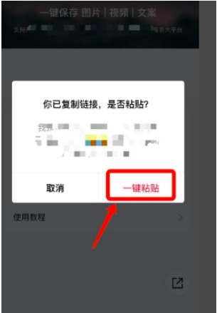6.此时将会自动识别视频链接,鼠标点击”一键粘贴“。