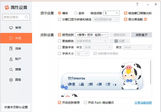(3)搜狗输入法的界面设置,自定义程度非常高,可以个性化的皮肤有很多。