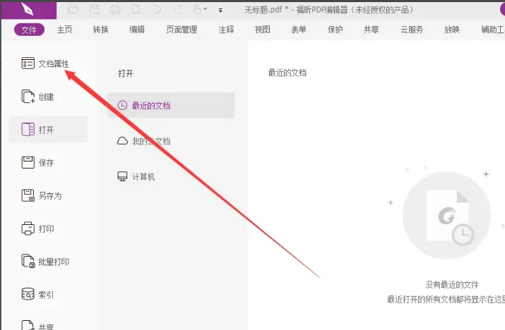 1、打开福昕PDF阅读器之后,点击左上角的“文件”选项卡。