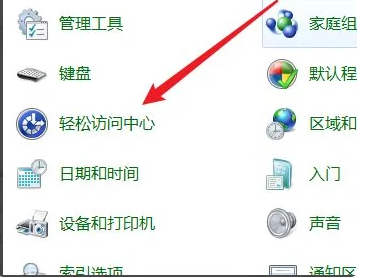 2、在右上角点击选择大图标查看方式。点击轻松访问中心。