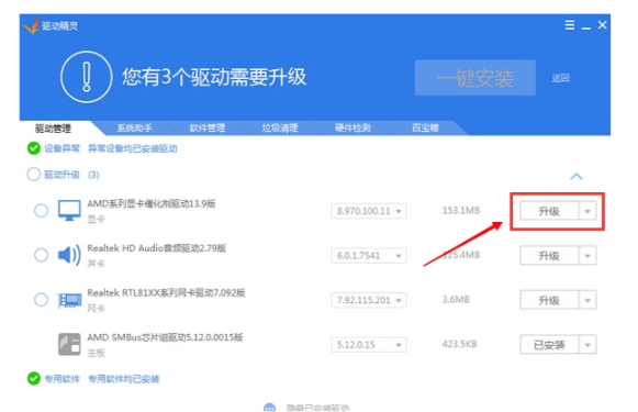 4、根据自己的需要选择相应的驱动进行“升级更新”,自动下载更新并安装相应的驱动,只需要安装软件的提示一直点击下一步即可。