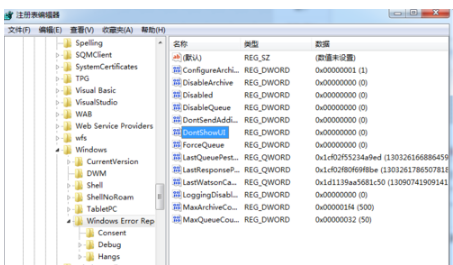 3、然后在注册表中依次展开文件夹:HKEY_CURRENT_USER-Software-Microsoft-Windows-Windows Error Reporting。