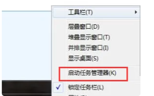 3.也可以鼠标右键点击任务栏空白处,在打开的菜单栏中点击启动任务管理器就可以打开任务管理器。。