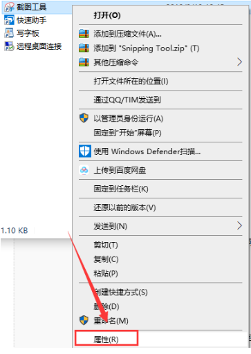 2、鼠标右键点击截图工具,点击属性。