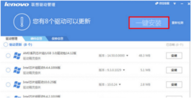 8. 扫描完成后,点击“一键安装”即可开始一键安装所有驱动。