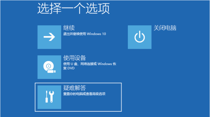 3、点击“疑难解答”——“高级选项”进入其中。