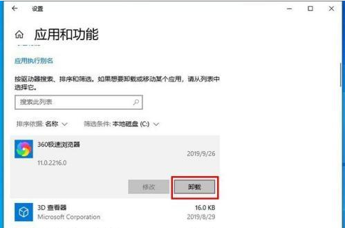 4、然后我们找下第三方软件将其卸载了,比如点击了360极速浏览器,点击“卸载”即可