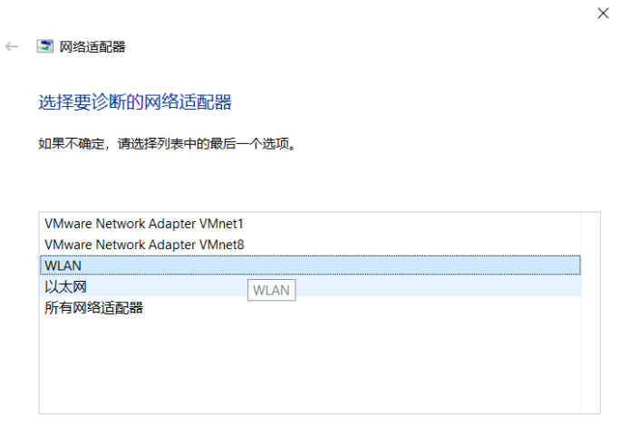 2、选择【疑难解答】,然后选择WLAN,点击【下一页】;