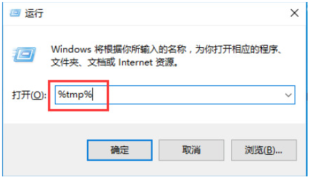 1、先找到临时文件存放目录,我们首先按下快捷键“win+R”打开运行,输入:%tmp%点击确定。