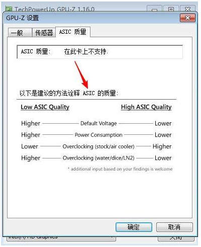 7、在gpu-z设置的ASIC质量中,如果显卡支持查看就可以看到显卡体质,这个就是显卡体质,下面有gpu-z诠释ASIC质量的方法。