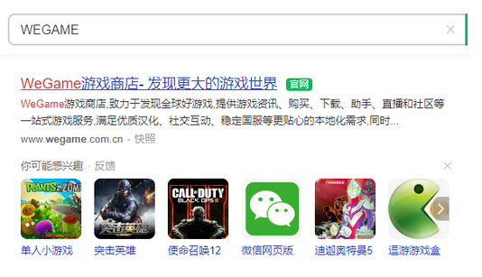 1、首先自行在电脑浏览器搜索WeGame,选择官方链接点击进入。