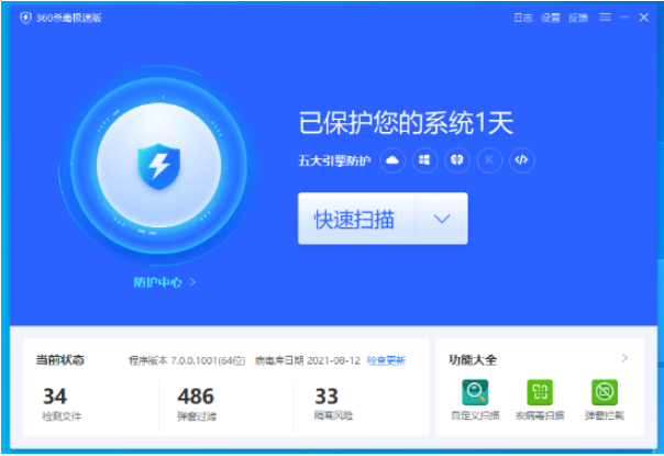 这是360安全卫士的兄弟软件,杀毒能力很强,占用内存也最小,而且各项功能都免费,唯一的缺点就是无法扫描安装包。360杀毒自己是没什么广告的,不过会诱导人去安装360安全卫士。