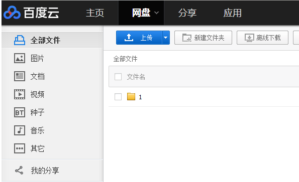 4、可以看到,百度云盘可以上传图片、文档、视频、种子等等,也可以上传文件夹。