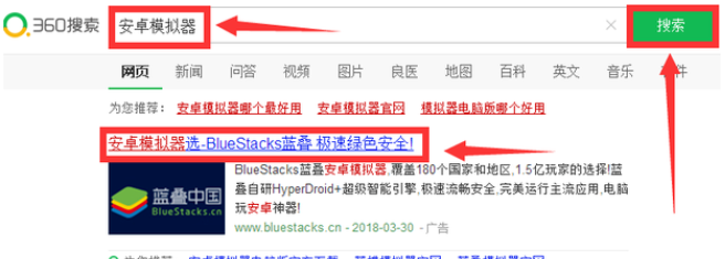 下载安卓模拟器的方法与下载作业帮类似,首先还是打开360浏览器,在搜索框内输入“安卓模拟器”,点击“搜索”,再进入网站下载。