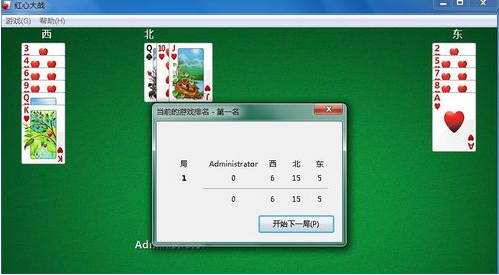 6、每一局牌全部出完时,将会有对话框弹出来,显示各个玩家的分数。