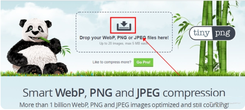 1、在浏览器中打开Tinypng,点击中间的上传按钮上传需要压缩的照片。