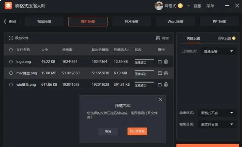 嗨格式压缩大师是一款专业的压缩软件,主要支持五种压缩功能,包括图片压缩、视频压缩、PDF压缩、Word压缩和PPT压缩,且支持压缩的图片格式比较丰富,常用的jpg、png、bmp、tif等格式均能使用。