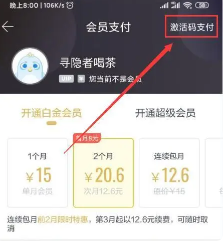 2、点击完成后,我们即可看到右上角有个【激活码支付】,点击进入其中。