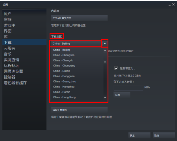 方法三:手动调节steam软件内的下载速度