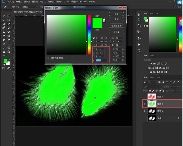 6、回到图层面板并新建图层,前景色设置为绿色,Alt+delete填充前景色。