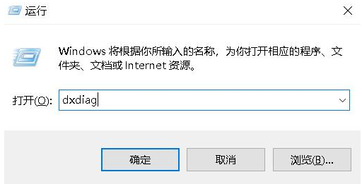 1、打开系统,使用快捷键“Win+R”打开运行,对话框内输入“dxdiag”命令回车。