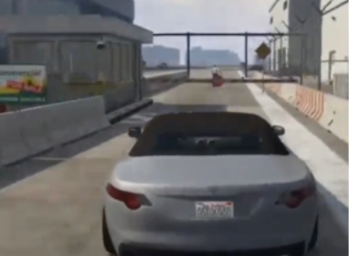 3、到了飞机厂门口,找到一辆载具驾驶它撞开大门,进入到飞机场内部。