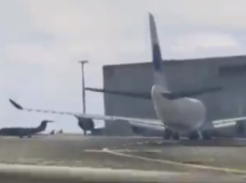 4、进入飞机厂大门后,一直往前开就可以看到一架大型客机停泊在那里了。