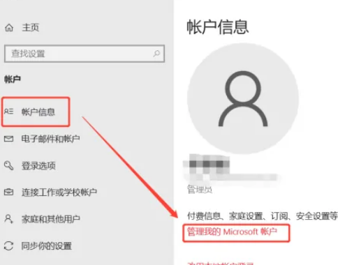 1.首先我们先打开电脑左下角“开始”界面,点击“设置”,进入后找到“账户信息”,点击“管理我的Microsoft账户”,进入个人Microsoft账户页面。