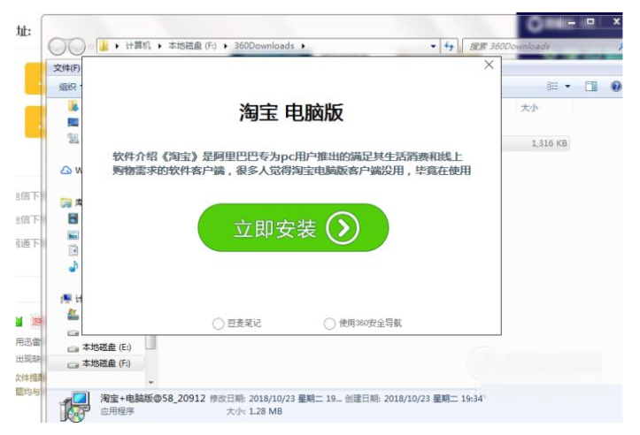 4.下载完成后,点击进入,点击“立即安装”,完成安装即可使用电脑版淘宝啦。
