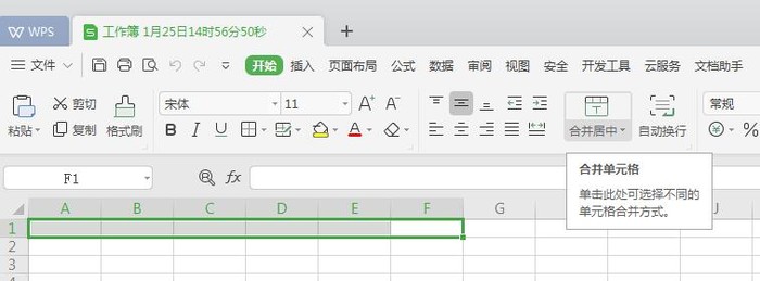 6、将设想中的标题框的单元格选中,点击“合并后居中”。
