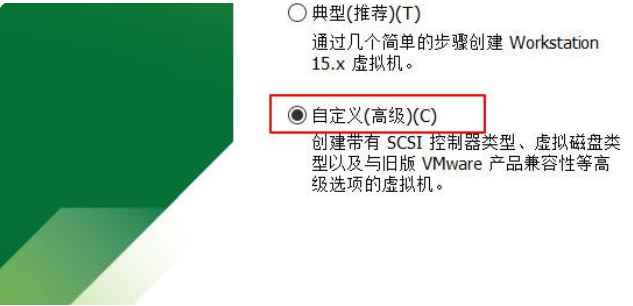 2.点击新建虚拟机,点击自定义(高级)模式,点击下一步。