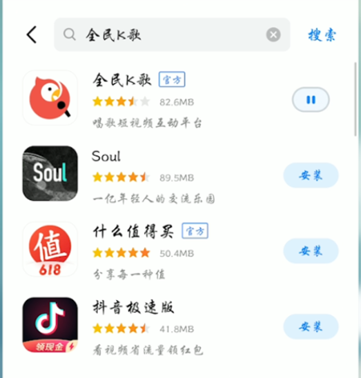 首先点击手机自带的应用商店程序,随后在应用商店中搜索全民K歌再点击下载,即可下载手机版的全民K歌,待下载完成后点击打开便可立刻使用。