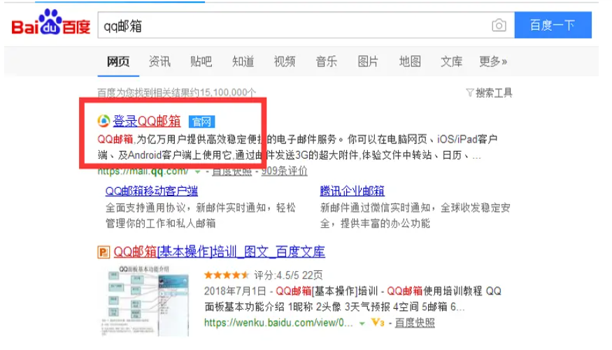 1、先在百度中输入“qq邮箱”,单击“百度一下”