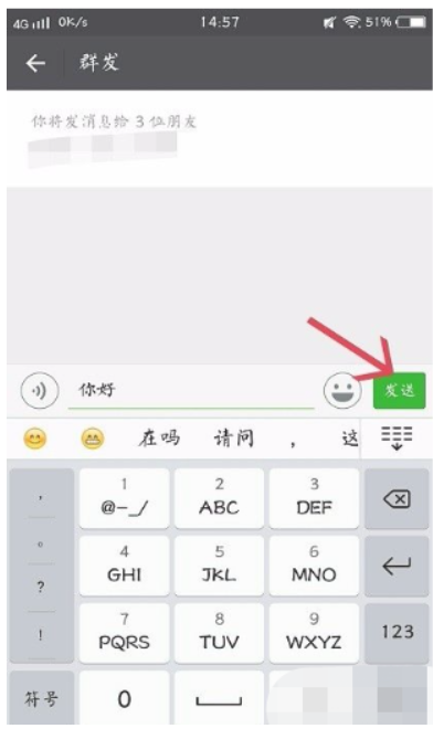 7、接下来是最后一步了,在输入框输入想要群发的消息,点击发送,就完成了群发。