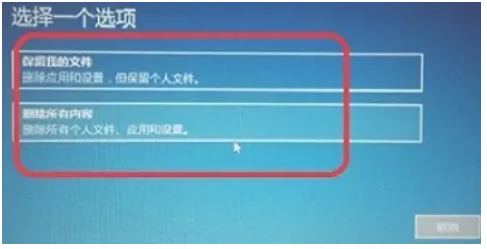 5.在弹出的对话框中,选择是"保留我的文件"还是“删除所有内容”,确认后点击选项,电脑就开始恢复出厂设置。