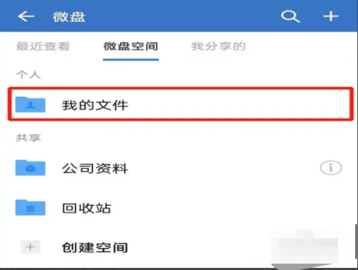 3、打开微盘的页面之后,点击“我的文件”,就可以查看企业微信下载的文件的位置啦。