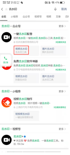 5、在搜索结果的页面中,点击视频去水印。
