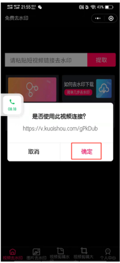 6、输入复制好的链接点击确定即可去掉水印。