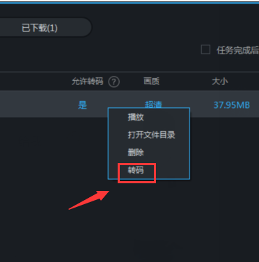 4、文件中找到我们需要转换为MP4格式的优酷超清视频之后,在该视频栏点击鼠标右键,选择(转码),在转码中进行设置即可。