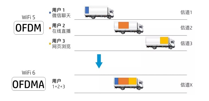 WiFi6的多用户允许电脑讯网时间多终端共享信道,可以使多台手机/电脑一起同时上网,从此前低效的排队顺序通过方式变成为“齐头并进”的高效方式等等。