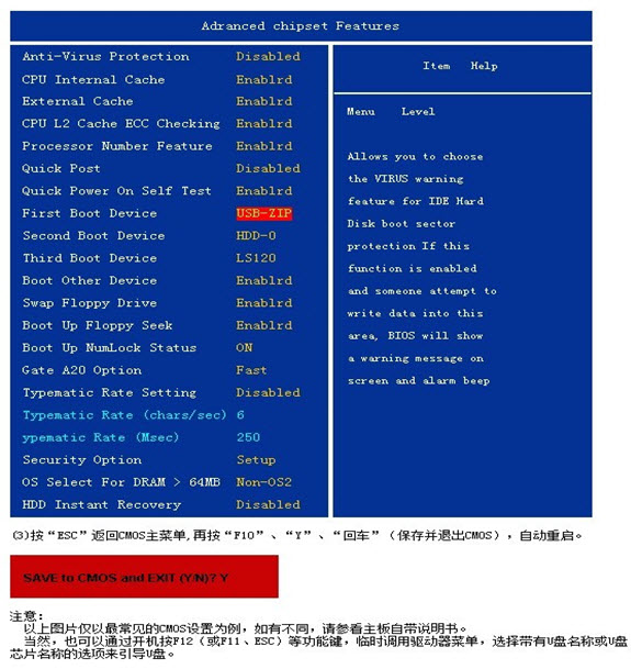 先插上U盘,再打开或重启电脑,1.在系统自检的界面上按 Del 键进入 BIOS 设置,2.进入 First Boot Device 使用“+”将启动顺序设定为USB-HDD图1:3.有些主板把 U 盘认成硬盘, 则在 Hard Disk Boot Priority 中选择如下图2,设定好后按ESC 一下,退回 BIOS 主界面,选择 Save and Exit 回车确认退出 BIOS 设置。电脑重启后就会出现主菜单。有些机器,特别是笔记本和品牌机有设置启动顺序的快捷键(如联想的机器开机的时候按F12键),选择从 usb 设备启动就行了。